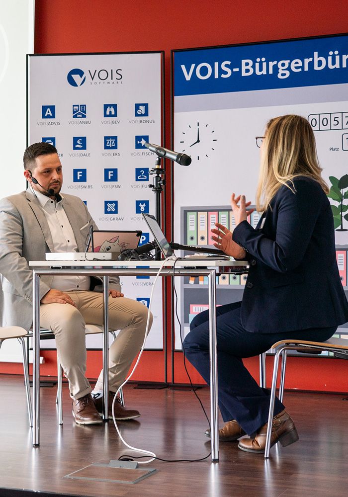 Klassische Frontalbeschallung kann jeder! Bei uns hingegen können Sie sich auf ein unterhaltsames Kammerspiel freuen, in dem wir Ihnen als VOIS-Team einen Einblick in die vielfältige VOIS-Produktpalette geben. Gemeinsam tauchen wir in Ihren Verwaltungsalltag ein und spielen verschiedene Szenarien durch, die Sie täglich bewältigen. VOIS bietet Ihnen dabei eine maßgeschneiderte Lösung - für all Ihre Herausforderungen.